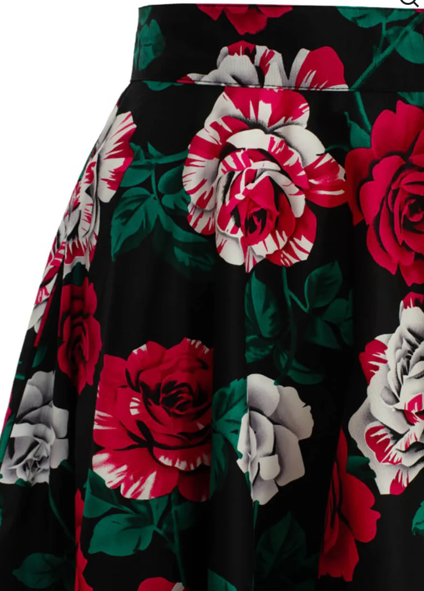 Der "Paint Me Roses" Rock ist ein echter Blickfang! Mit seinem lebendigen Rosendruck in roten und weißen Tönen verleiht er jedem Outfit eine romantische Note. Praktische seitliche Eingrifftaschen bieten zusätzlichen Komfort, während der Reißverschluss hinten für eine perfekte Passform sorgt. Kombiniere ihn mit einem schlichten Oberteil für einen eleganten und femininen Look. Ein absolutes Must-have für deinen Kleiderschrank!