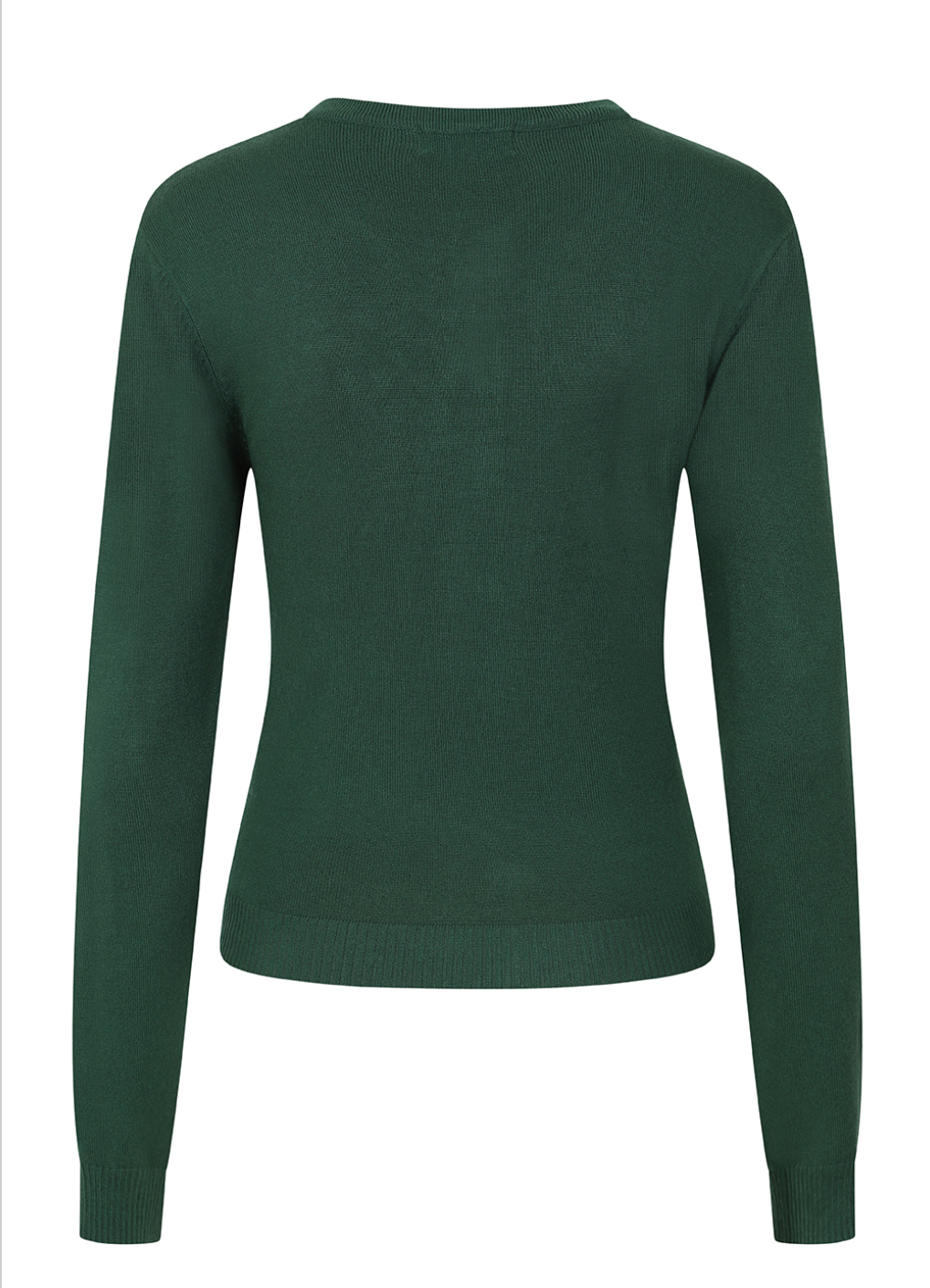 Diese bezaubernde Strickjacke in einem satten Grün ist ideal für alle Liebhaber des Vintage-Stils. Hergestellt aus weichem, angenehmem Material, bietet sie sowohl Komfort als auch eine stilvolle Ausstrahlung. Die Jacke ist mit charmanten Stickereien auf der Vorderseite verziert, die ihr einen verspielten, retro-inspirierten Look verleihen. Die Knopfleiste mit dekorativen Knöpfen und der klassische Rundhalsausschnitt unterstreichen ihre Vintage-Ästhetik. Perfekt für alle Jahreszeiten, verleiht sie jedem Outfit einen Hauch von Nostalgie.