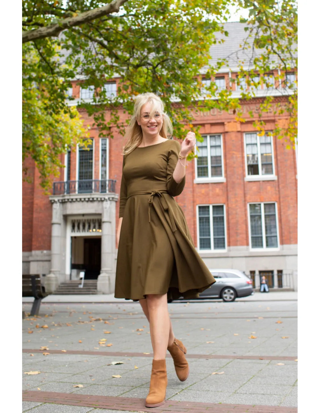 Das Ballerina-Kleid ist ein feminines Kleid mit eng anliegendem Oberteil, Bindegürtel in der Taille und weitem Rock. In die Seitennaht des Rocks wurden zwei unsichtbare Taschen eingearbeitet, was das Kleid besonders bequem macht! Durch das zeitlose Basic-Design lässt sich dieses Kleid vielseitig stylen und das ganze Jahr über tragen. Dieses Kleid hat einen Rundhalsausschnitt, Dreiviertelärmel und einen Reißverschluss auf der Rückseite. Hergestellt aus einem schönen festen Stretch-Stoff. Bequem und figurkorrigierend zugleich.