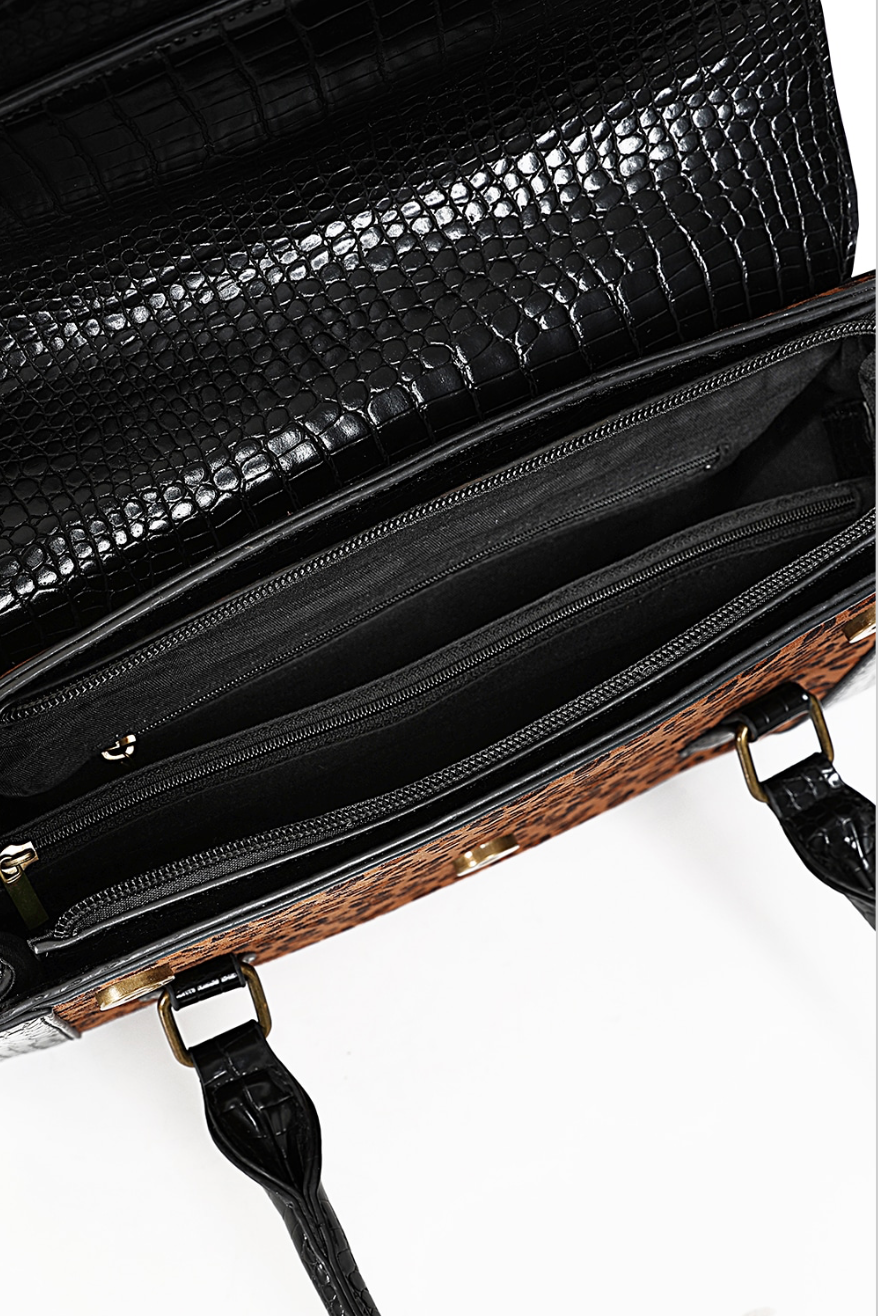 - Material: Leder in Krokodil-Optik kombiniert mit samtigem Leopardenmuster.
