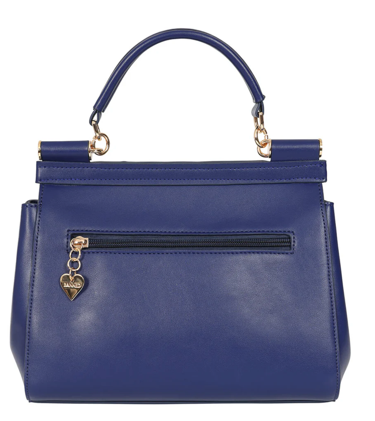 Diese charmante Handtasche im Sailor Look vereint maritimen Stil mit verspielter Eleganz. Das klassische Marineblau in Kombination mit weißen Streifen und einer zierlichen Schleife auf dem Überschlag verleiht der Tasche einen authentischen, retroinspirierten Matrosen-Charme – perfekt für Liebhaberinnen des Vintage-Maritimen Stils. Die Tasche bietet dank verstell- und abnehmbarem Schultergurt sowie kurzem Tragehenkel verschiedene Tragevarianten – ob als Handtasche oder crossbody. Goldfarbene Metallelemente setzen edle Akzente und unterstreichen das stilvolle Design. Auf der Rückseite befindet sich eine praktische Reißverschlusstasche, ideal für Smartphone oder andere Dinge, die schnell griffbereit sein sollen.
