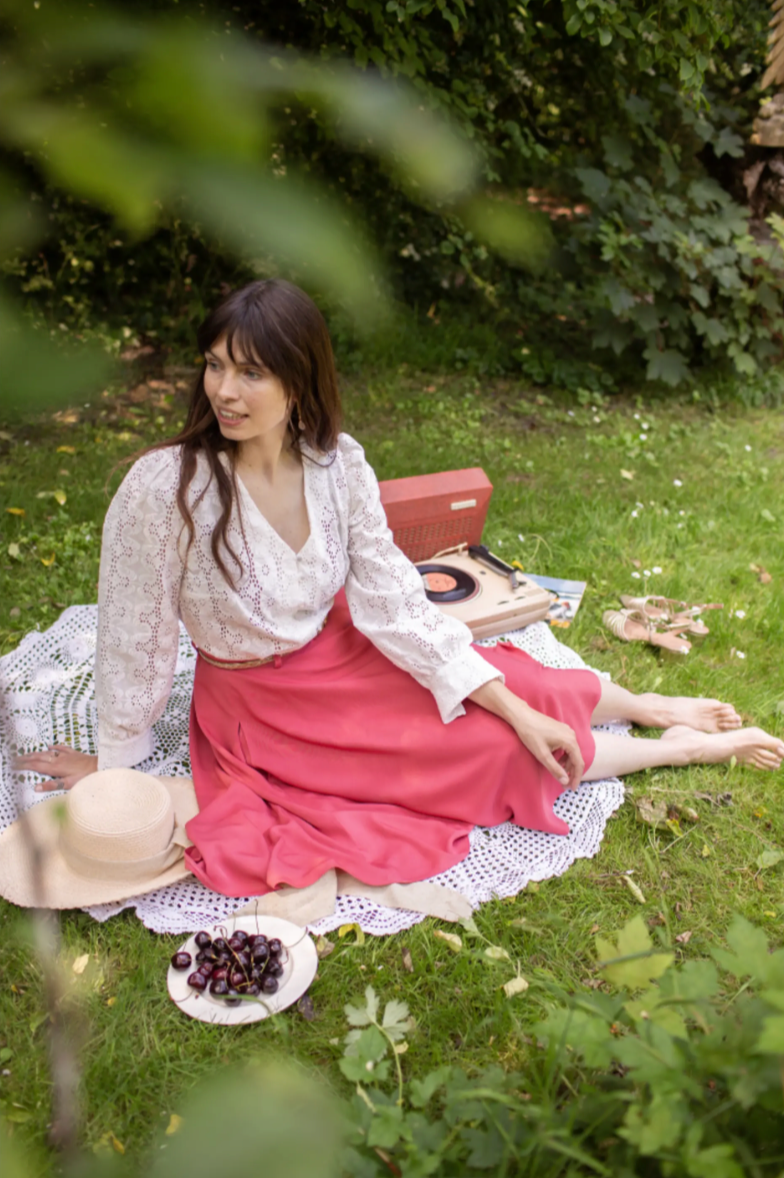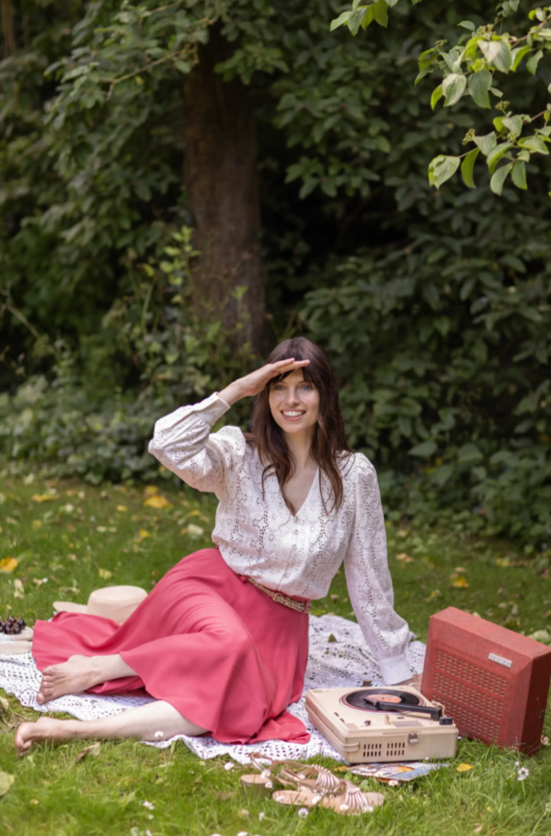 Wunderschöne Tellerock aus Gabardine hat einen taillierten Bund mit Gürtelschlaufen und endet in einem schmeichelhaften Vollkreis. Der Rock hat Taschen in der Seitennaht. Hergestellt aus einem wunderschönen, hochwertigen Gabardine-Stoff für eine schöne Passform und einen schönen Fall.