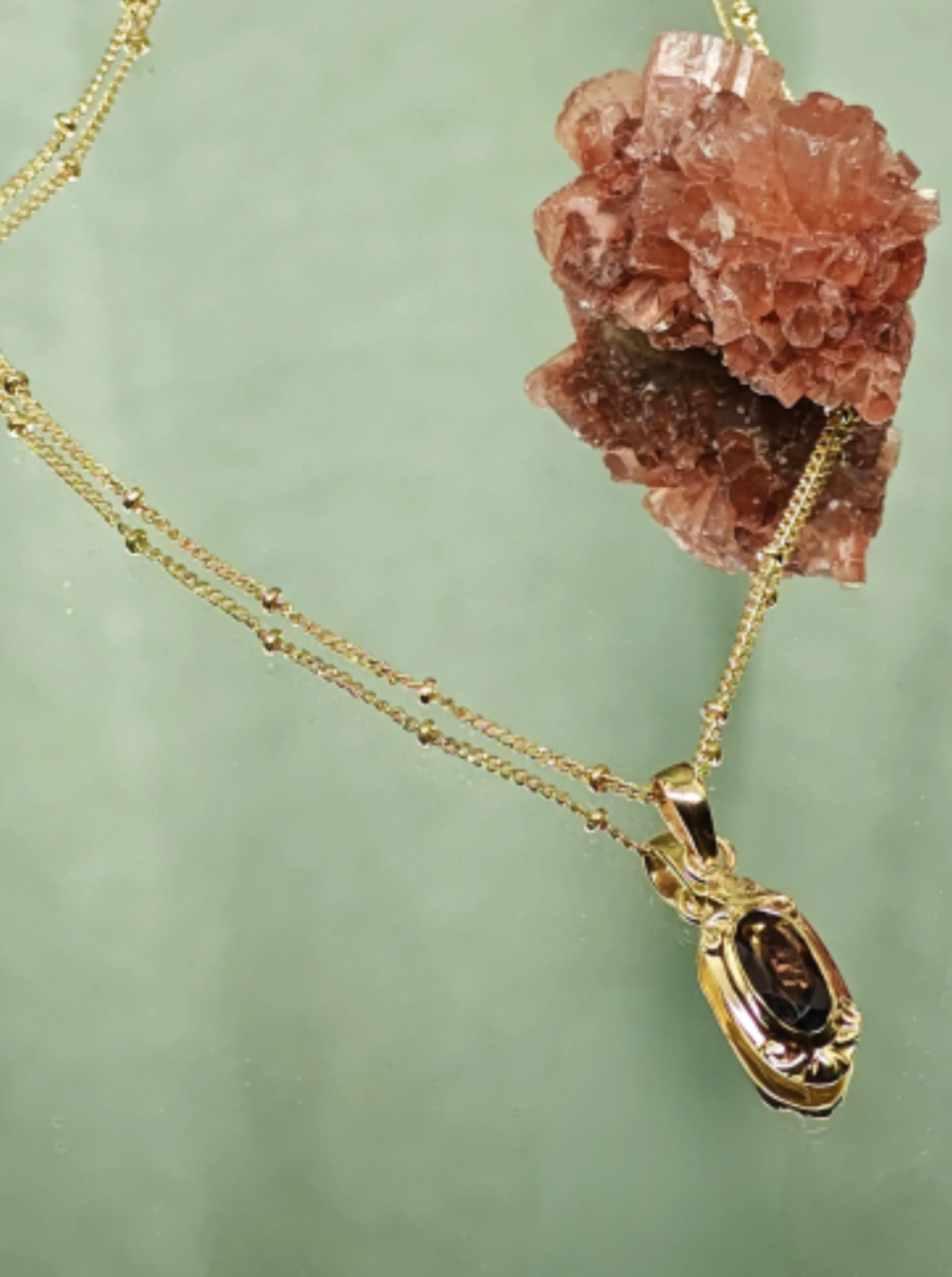 Halskette, The Antique Necklace Smokey Quartz, Vergoldet