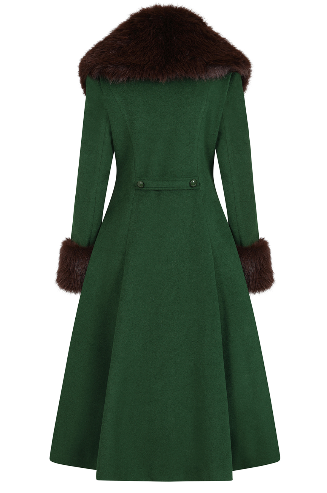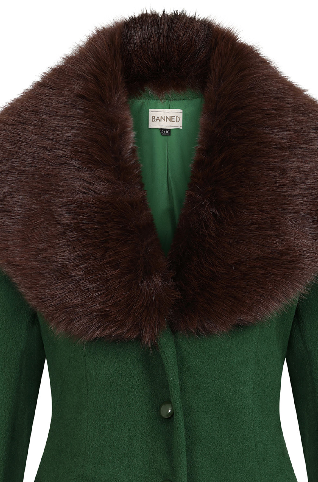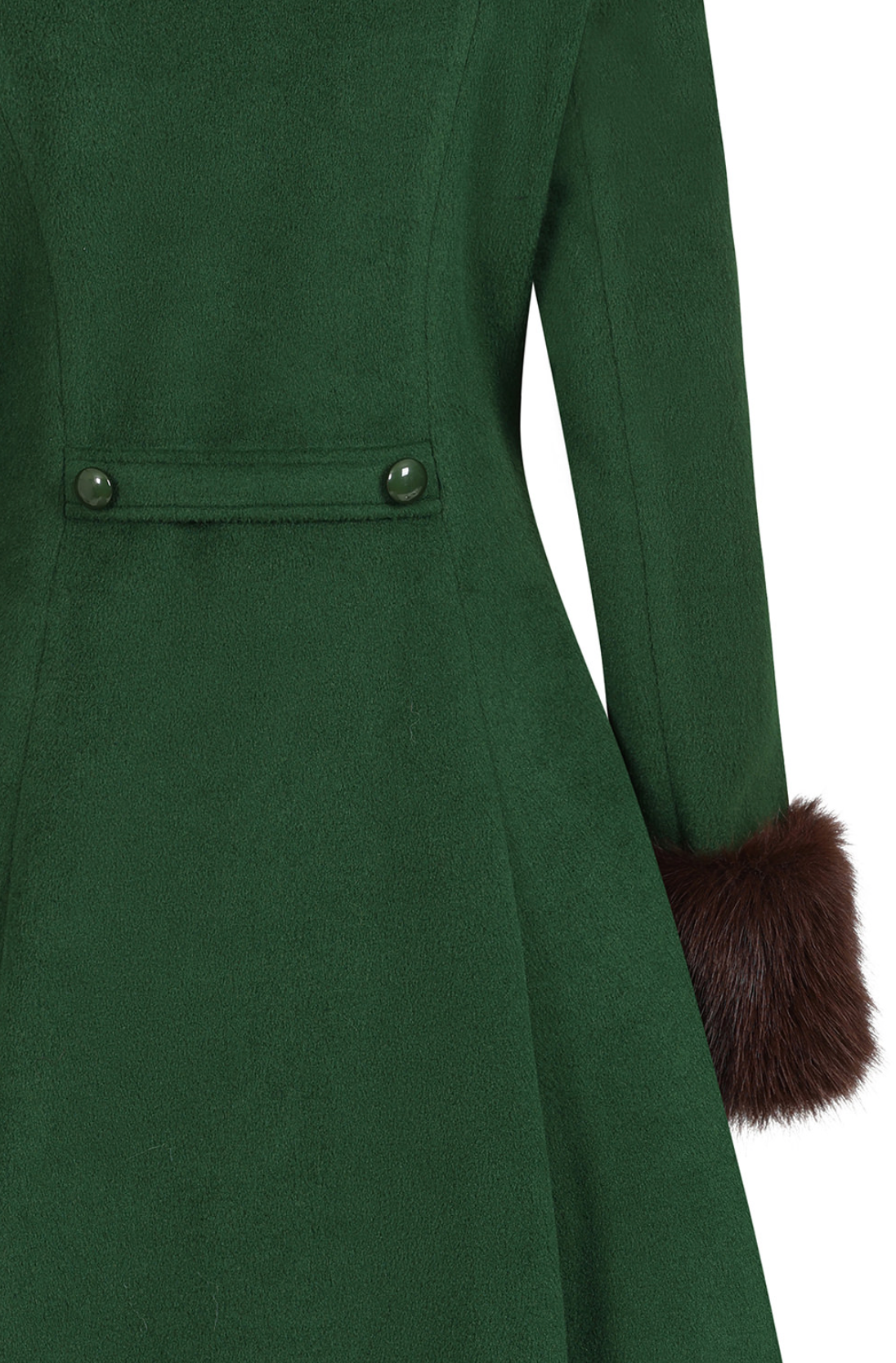 Vintage-Swing Mantel Martha, Flaschengrün, Kunstpelz
