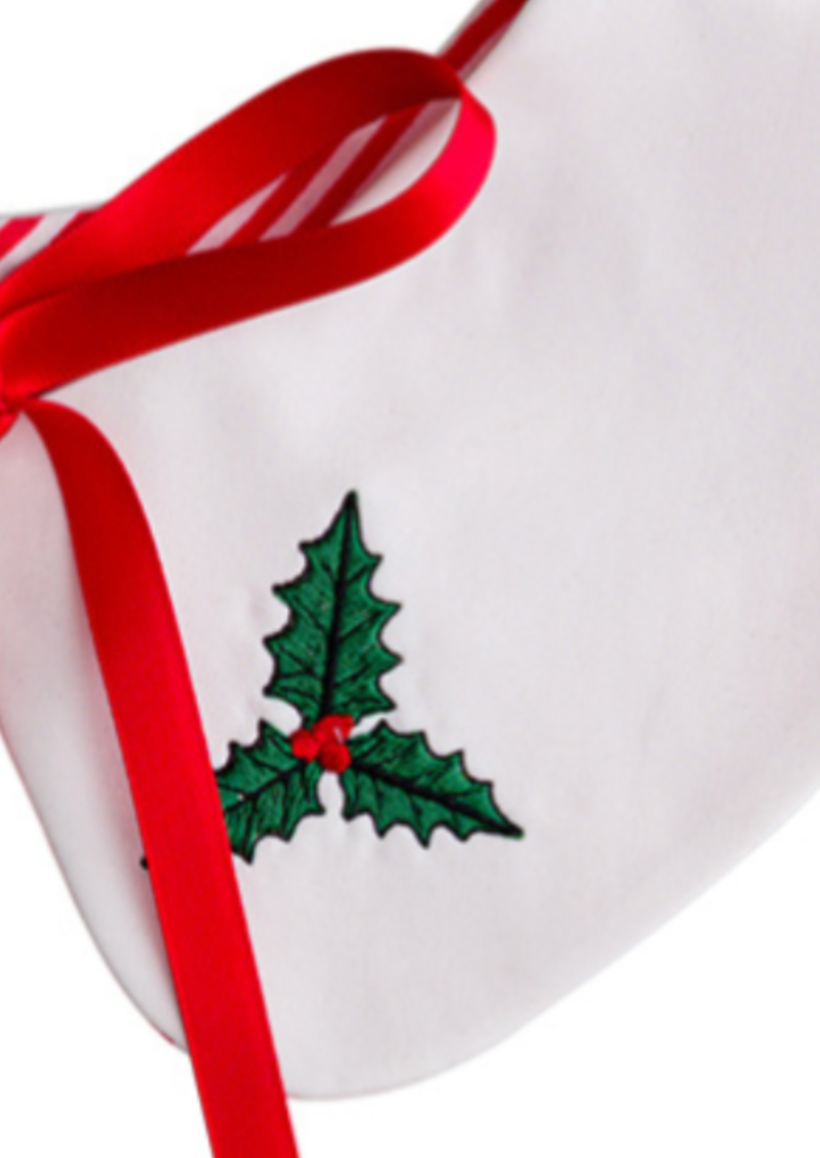 Weiss mit eingesticken Kätzchen und Zweig, oder ihr wendet ihn und habt das klassische "Candy-Cane-Muster".